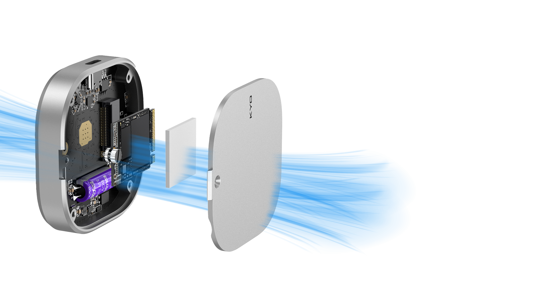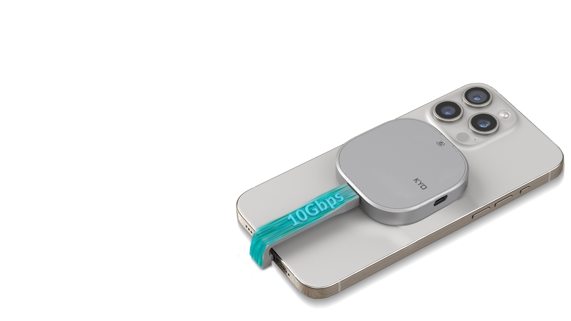KYO MD10 ,Fitur pemasangan magnetik yang inovatif memungkinkan KYO MD10 Portable SSD dapat dengan mudah dipasang pada permukaan logam seperti iPhone, perangkat Android, atau casing laptop.